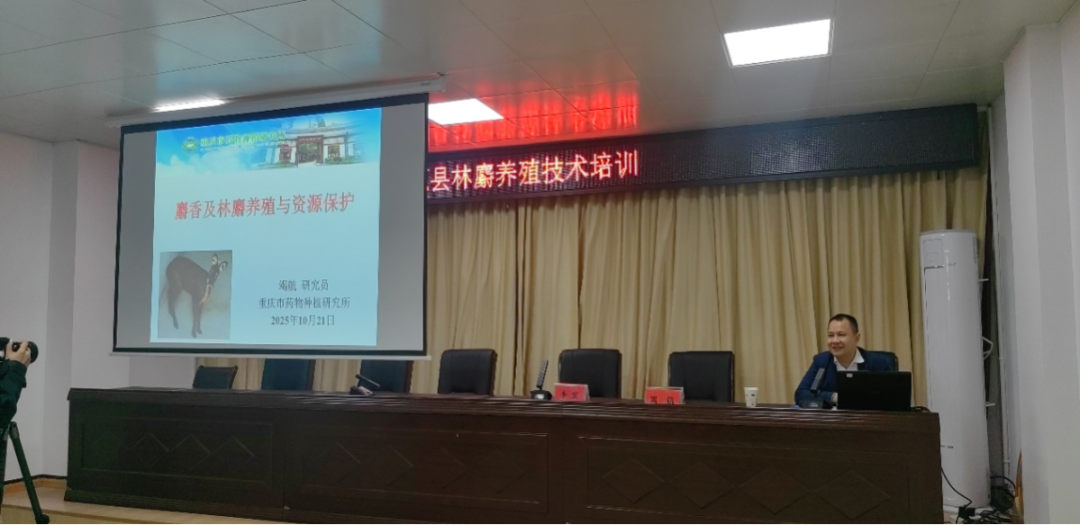 应四川省汉源县科协邀请,2025年10月21日,市药植所林麝团队竭航研究员赴汉源县开展技术培训。来自汉源林赐麝业、华堂农业、怀华农业等8家大型林麝养殖企业的技术人员和养殖人员约30人参会。