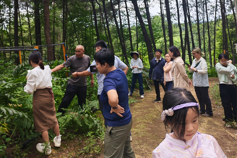 ▲老药工传承工作室师承人员在淫羊藿林下种植基地观摩。市药植所 曹敏 摄