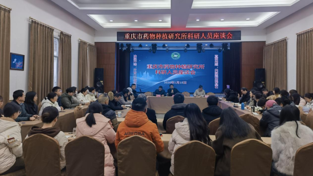 2026年1月15日,重庆市药物种植研究所科研人员座谈会在刘正宇全国名老中医药专家传承工作室学术报告厅召开。会议由副所长张军主持,纪委书记梁正杰、科技科科长曾德军出席,全所科研人员参加,围绕科研发展与职工工作生活保障议题深入交流。