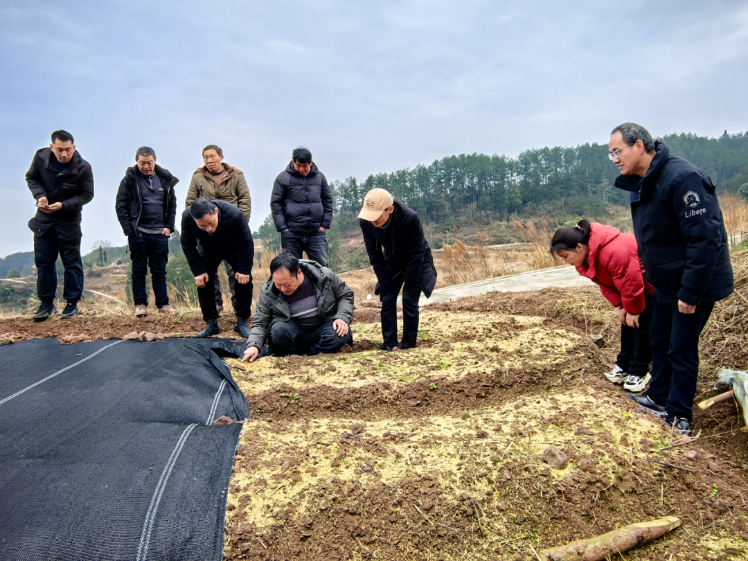 3月8日,重庆市药物种植研究所副所长李品明研究员带领药用植物园任明波主任和杨毅副主任、中药材规范化生产研究中心韩凤正高级农艺师、中药材生产质量控制研究中心谭秋生主任中药师等的专家团队赴丰都县栗子乡开展中药材淫羊藿的科技服务,重庆梁桥中药材专业合作社、丰都县南天湖中药材种植大户共10余人座谈交流及现场考察。