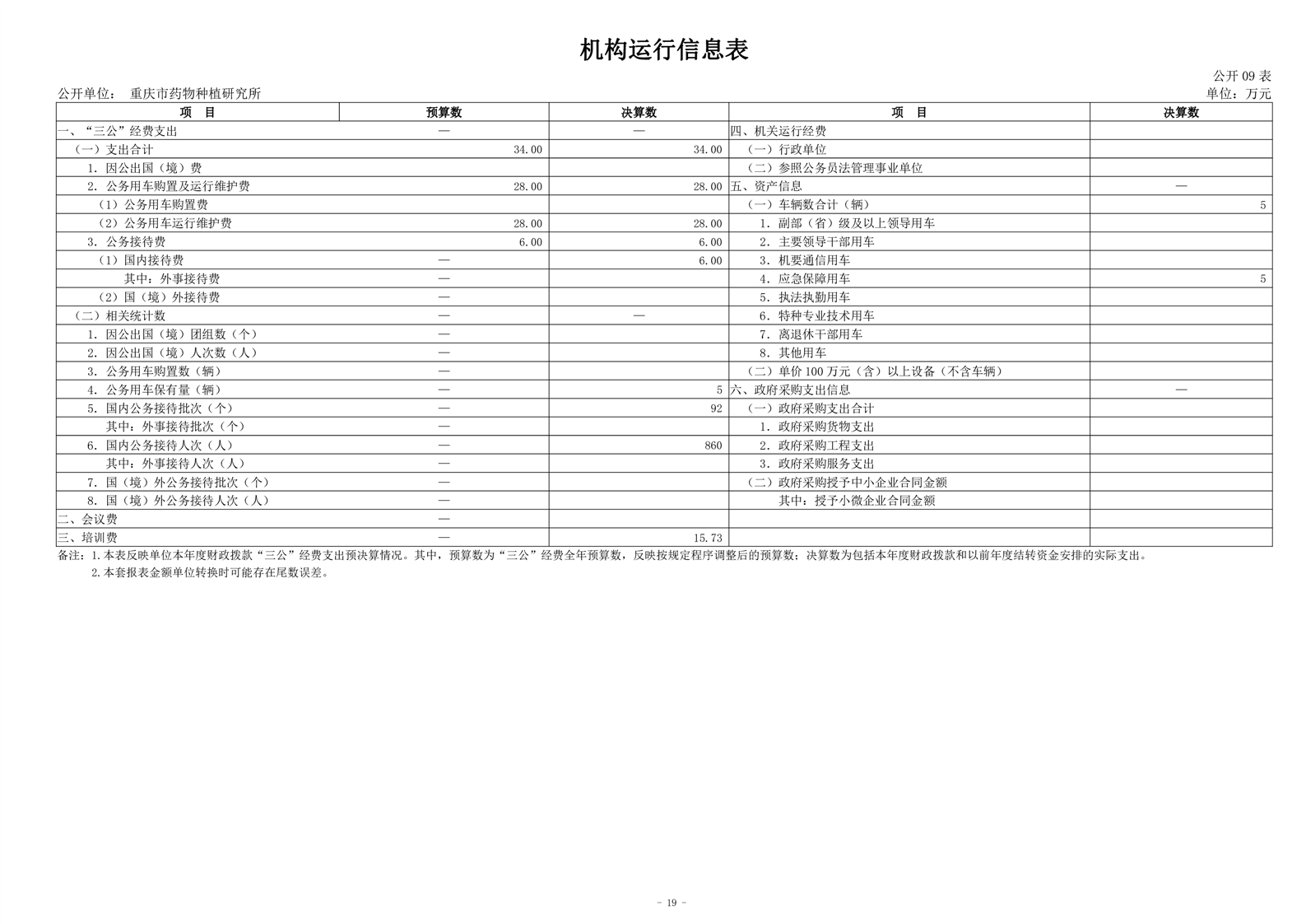 重庆市药物种植研究所2023年决算公开说明及公开报表