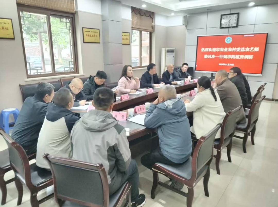 11月24日,重庆市农业农村委员会总农艺师骆凤玲率队莅临我所,专题调研重庆市中药材产业发展现状及我所中药材种业研究进展。南川区农业农村委员会主任黎贵友、副书记胡彬陪同调研,我所在家领导班子及相关业务部门负责人全程参与并汇报工作,相关企业代表参加座谈会。